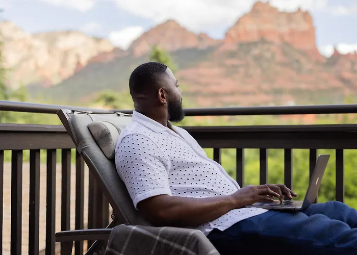 Perched on a hilltop, Sky Rock Sedona provides spectacular views of the surrounding Red Rocks. Just a minute from Sedona towns, this hotel features a seasonal outdoor pool and a terrace perfect for admiring sunrises and sunsets. Guests enjoy a complimentary shuttle service to Uptown Sedona for easy exploration of local attractions like Tlaquepaque Arts & Crafts Village. Moreover, the hotel offers a pet-friendly outdoor area where furry friends can relax and play. Each room is equipped with modern amenities and comforts to ensure a pleasant stay.