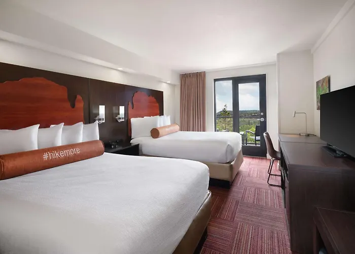 Nestled among breathtaking red rock formations, Hilton Sedona Resort offers a luxurious experience with a full-service spa and an on-site golf course. Rooms are designed with elegance, featuring gas fireplaces, private balconies, and plush bedding for a restful night's sleep. Guests can indulge in Southwestern cuisine at ShadowRock Tap + Table or unwind at the spa after a day of outdoor activities nearby. This resort focuses on creating an exceptional and pet-friendly stay for all guests.